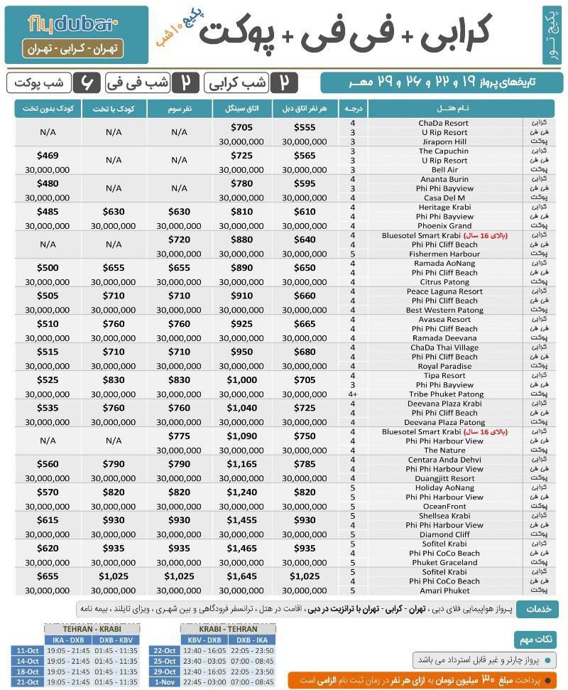 کرابی + فی فی + پوکت ( 10 شب و 11 روز ) ویژه تاریخ های 19-22-26و29 مهر